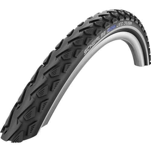 The new Schwalbe Land Cruiser as always is ready for any terrain. The key update is the tread pattern, but everything else is the same. Rolling nice on tarmac and catering well for gravel paths, tracks etc, its a tyre for a wide range or terrains.